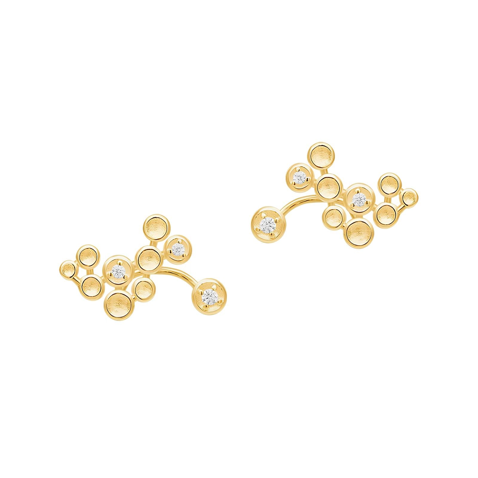 18k gold-plated, cubic zirconia, sterling silver, light-textured satin finish.