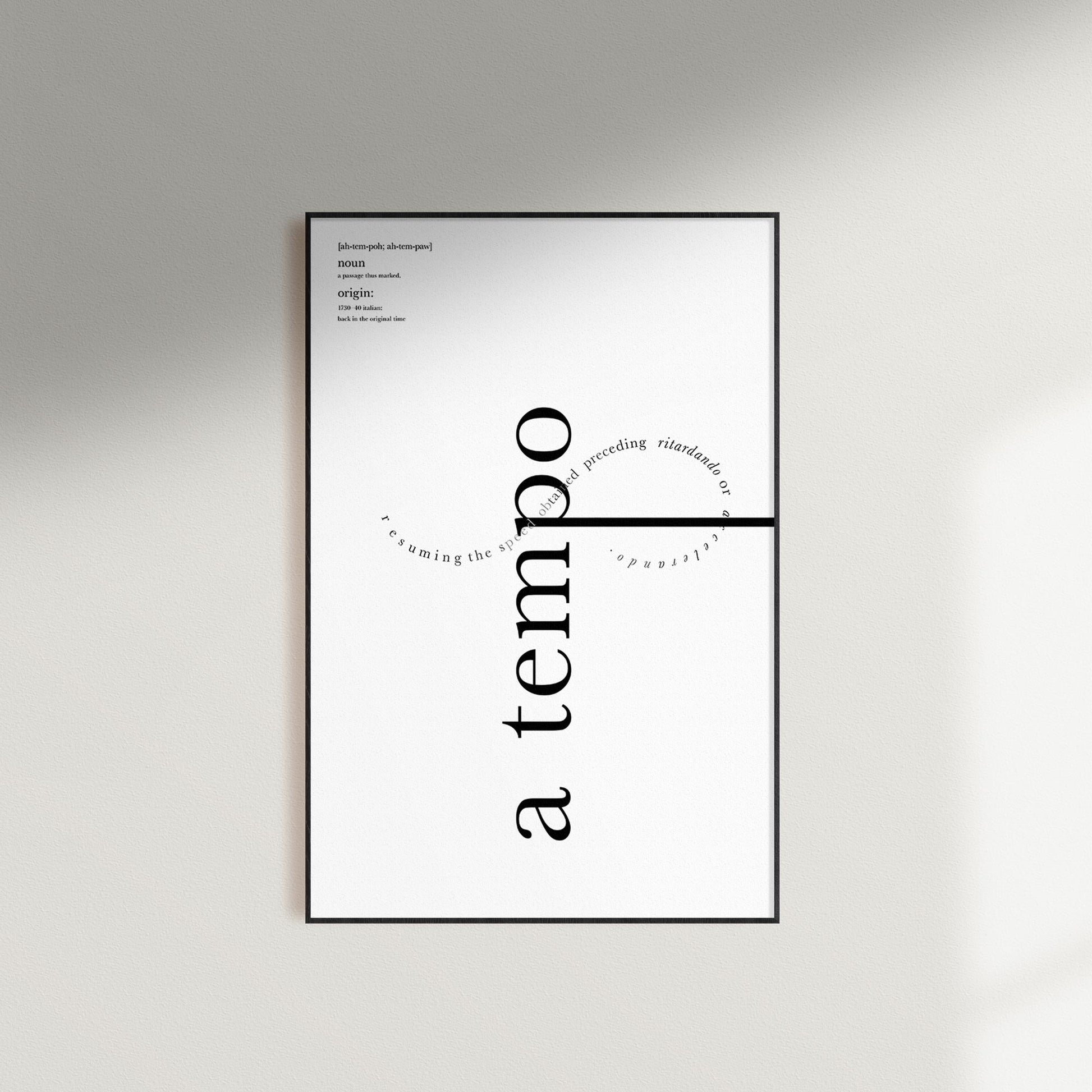 Let this art print be a reminder that life itself is a symphony, and within its rhythmic tapestry, we find moments of tranquility and moments of exhilaration. Embrace the allure of "a tempo" and allow its captivating presence to transform your space into a sanctuary of rhythm and harmony.