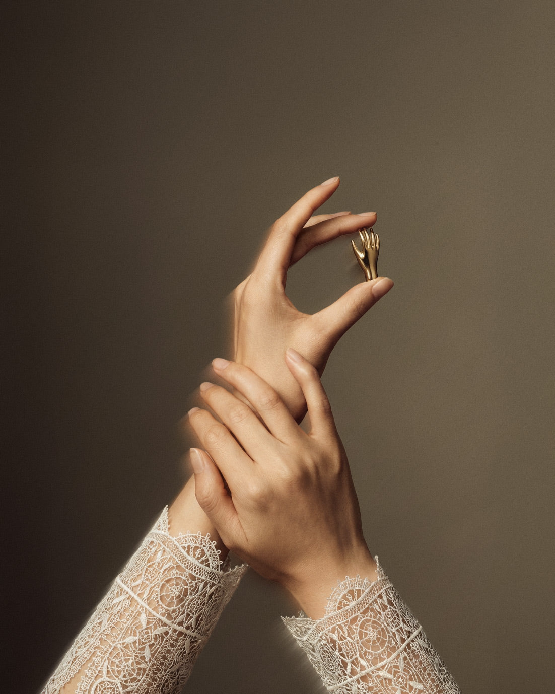 • Sculptural hand form inspired by musical practice and craft
